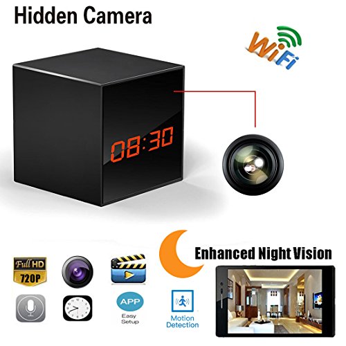 -. Title : Hidden Spy Camera Wireless Network Nanny Camera Smart Clock WiFi Fluent Video Recorder with Enhanced Night Vision,Motion Detection,12&24 Hour Alarm Clock,Black