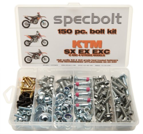 150pc Specbolt KTM SX EX EXC 2 or 4 Stroke models Bolt Kit for Maintenance & Restoration of MX Dirtbike OEM Spec Fastener. This includes 2 STROKES: 50 60 65 85 105 125 250 300 360 380 550 AND 4 STROKES: 250 350 400 450 500 520 525 530 620 640