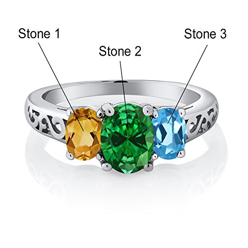 -. Title : Build Your Own 3 Stone Ring - Personalized 3 Birthstones 3 Stone Ring in Rhodium Plated 925 Sterling Silver