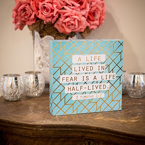 Teal A Life Lived 8 x 8 inch 2 Timothy 1:7 Wood Wall Block Plaque Decoration