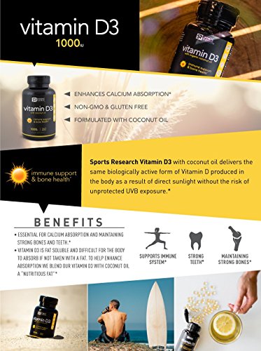 THE SUNSHINE VITAMIN: Sports Research Vitamin D3 delivers the same biologically active form of vitamin D produced in the body as a result of direct sunlight without the risk of unprotected UVB exposure