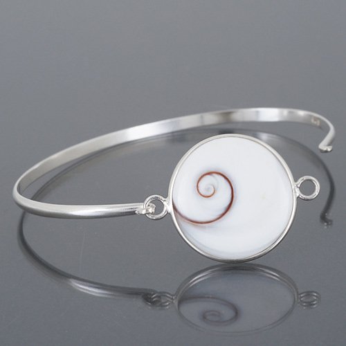 -. Title : 925 Sterling Silver Natural White Shiva Eye Sea Shell Bangle Bracelet