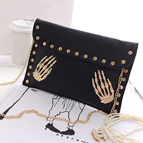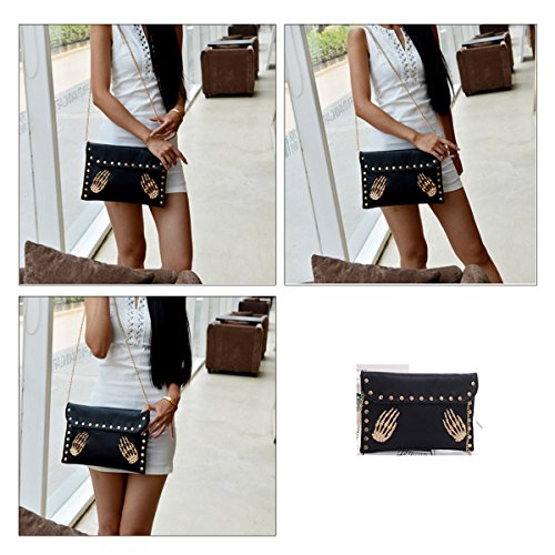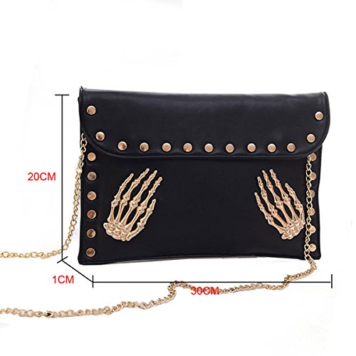 Orfila Women's Fashion Skull Rivet Clutch Handbag Envelope Chain Shoulder Crossbody Bag
