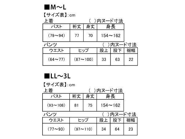 | 重量 | M~L:約510g、LL~3L:約570g 個装重量:580g |