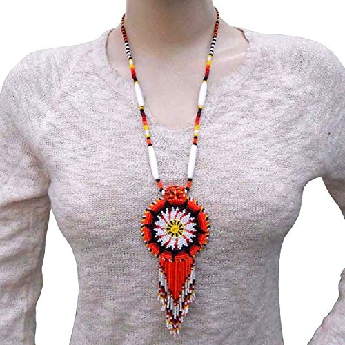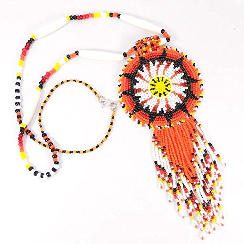 -. Title : Viva ORANGE BLACK NATIVE STYLE STAR SEED BEADED MEDALLION NECKLACE EARRINGS SET S51/2