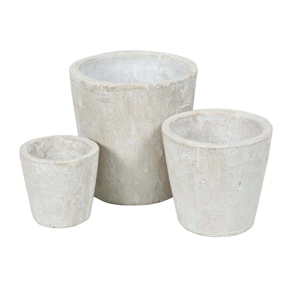 fk094igrjs白色のテラコッタのプランターです サイズ 大:Φ200×H200、中:Φ160×H150、小:Φ120×H110mm 個装サイズ:20×20×20cm 重量 4.3kg/セット 個装重量:4300g 素材・材質 陶器 生産国 中国 お庭がエレガントな雰囲気に ※表面の白い色は経年とともに少しずつ剥離して素地の色が出てきますそれらも味わいのひとつとして考えております ※衝撃に弱い商品につき取り扱いにご注意ください ※アンティークな味わいを出す為に色幅や欠け色ムラなど、わざと荒々しく仕上げてあります ※冬期屋外に置いたままですと、凍結により破損する場合があります ※底面に穴があいています 白色のテラコッタのプランターです