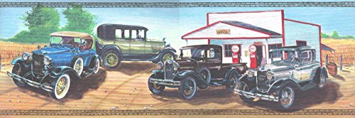 -. Feature : 15 Foot Long Spools - Prepasted Wallpaper Border / 7 Inches Wide - PCM1000 / Ford Model A Cars Wallpaper Border / Antique Cars Wallpaper Border / Diner Wallpaper Border, Route 66 Theme, Gas Station Theme Wallpaper Border