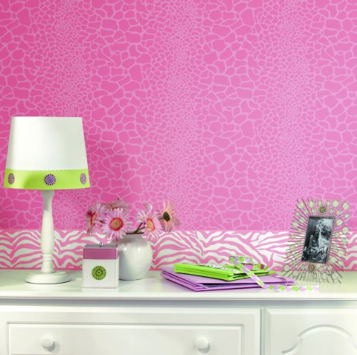 York Wallcoverings Friends Forever JE3672B Girly Glam Zebra Pre-Pasted Wallpaper Border, Black