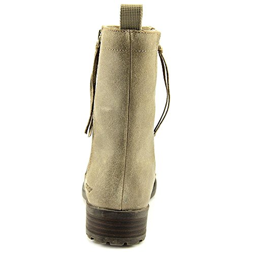 Insulated suede DKNY boots offer lightweight comfort in a rugged, weather-ready design. Soft faux-fur lining and shearling trim add a cozy touch. Exposed zips. Sturdy lug sole.