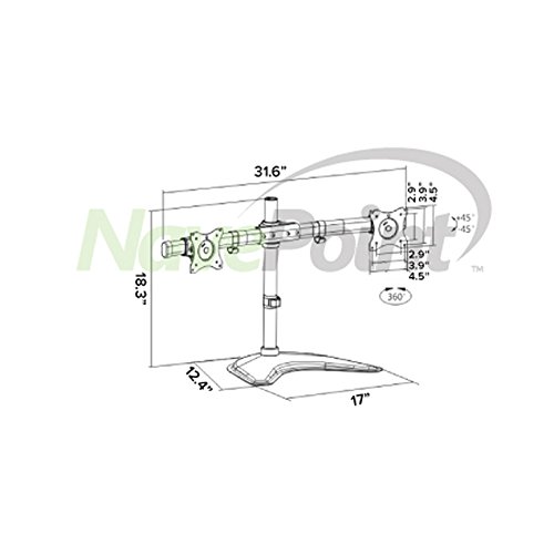 -. Binding : Office Product -. Brand : NavePoint -. Color : Black -. EAN : 0817880015907 -. Feature : Fully adjustable joints make this mount easy to position using tilt, swivel, rotate or height adjusting pole. Setup takes just minutes. 360 rotating mounting heads allow for both landscape and portrait orientation. / Supports most LCD Monitors up to 27". / VESA 75 x 75mm or 100 x 100mm compatible / Package contains all hardware necessary for mounting / Monitors not included. -. Label : NavePoint -. Manufacturer : NavePoint -. Model : 4330178851 -. MPN : 400469481 -. NumberOfItems : 1 -. PackageQuantity : 1 -. PartNumber : 400469481 -. ProductGroup : Office Product -. ProductTypeName : OFFICE_PRODUCTS -. Publisher : NavePoint -. Studio : NavePoint -. Title : NavePoint Dual LCD Curved Monitor Mount Stand Free Standing With Adjustable Tilt Holds 2 Monitors Up To 27-Inches Black -. UPC : 817880015907