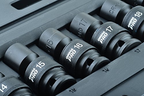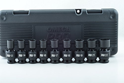 Omega Pro 83021 9 Piece 1/2" Drive Swivel Metric Impact Sockets , 12" Height, 5.7" width, 15.1" Length