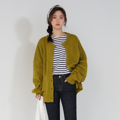 style 니트가디건 / 드롭숄더 / 라운드넥