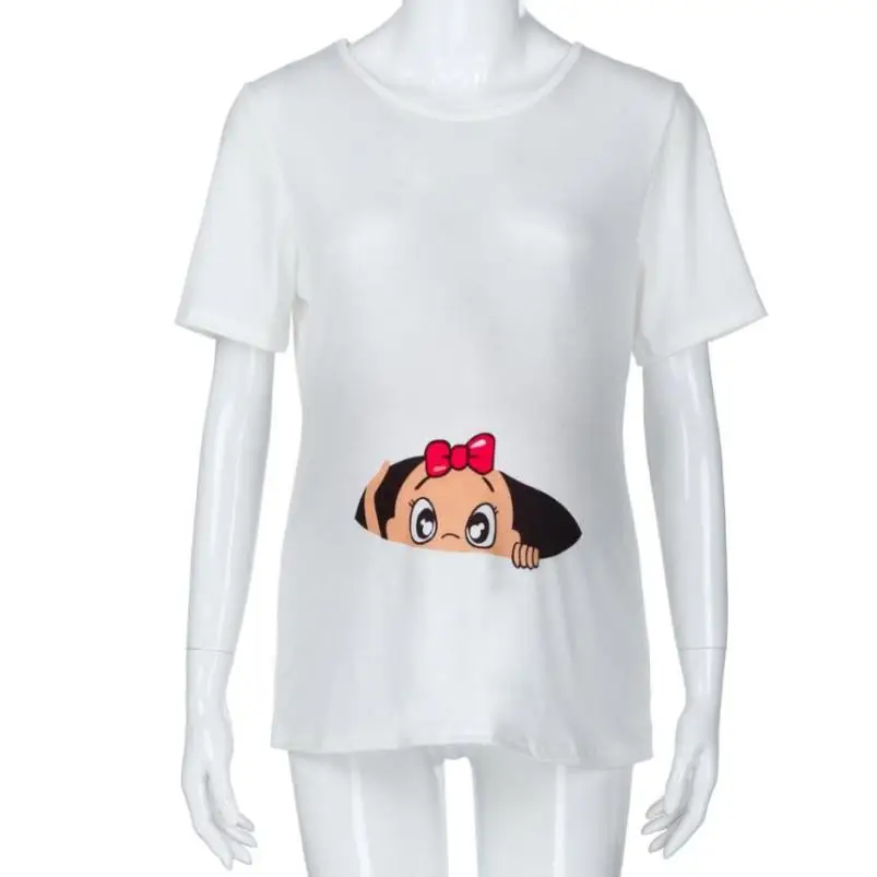 Pregnant Women short Sleeve T-shirts:Baby peeking out