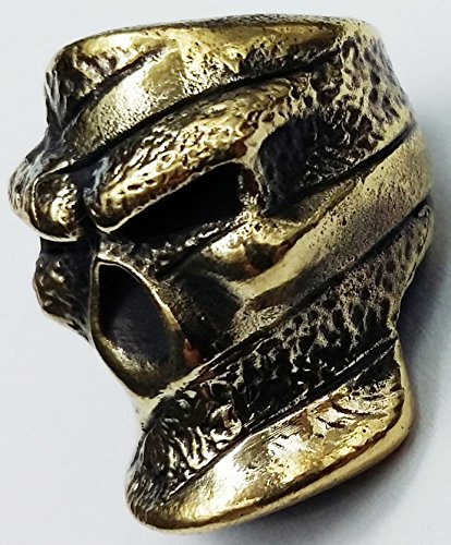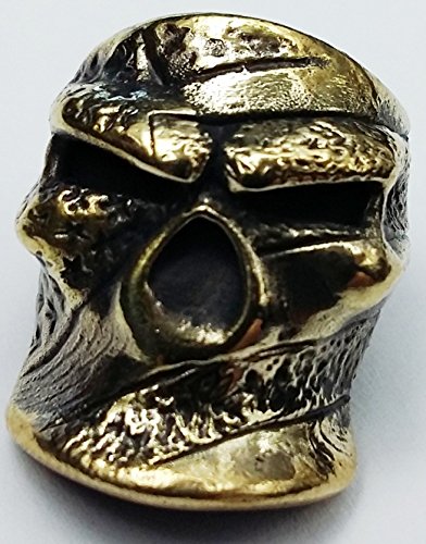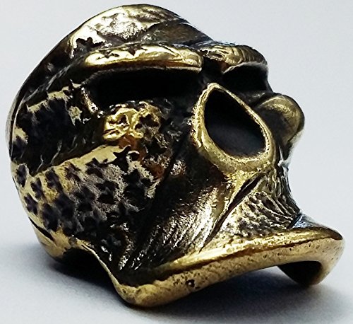 SKULL FLAG COLLECTIBLE BEAD BRONZE PARACORD LEATHER LANYARD BEADS HAND-CAST METAL