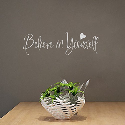 AmazingWall 8x22" Believe In Yourself Wall Sticker Quote Inspiration Letters Office Living Room Bedroom Peel and Stick (glitter sivler)