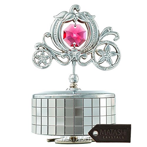 - Exquisite Craftsmanship – These decorative music boxes are made with a chrome silver plated finish and fitted with a premium, red Matashi crystal inside the carriage. Dimension 1.75 x 1.75 x 3 inches