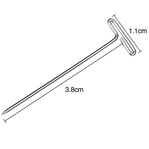 Steel T-pins: these silver pins are 1-1/ 2-inch long and 0.4 inch wide; They are made of good quality steel with a nickel finish, durable and lightweight