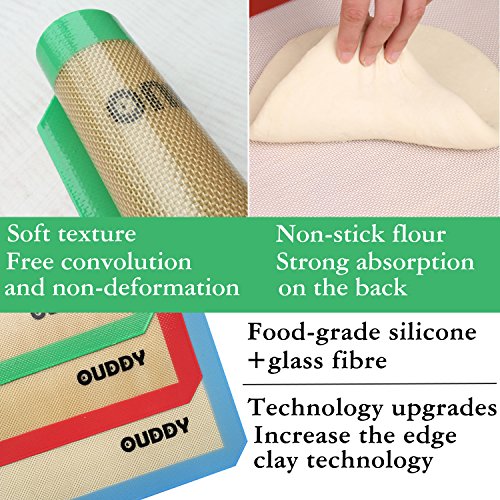 Silicone Baking Mat - Set of 3 Half Sheet (Thick & Large 16.5" x 11.5") - Reusable Non Stick Silicone Baking Liner, Silicone Cookie Cooking Sheet Mat by Ouddy