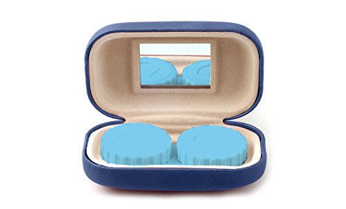 (Calabria)/Vision Care/Contact Lens Care/DIRECT FROM USA/Contact Lens Case Metal w/ Fabric Mirror in Matte Blue CLC4