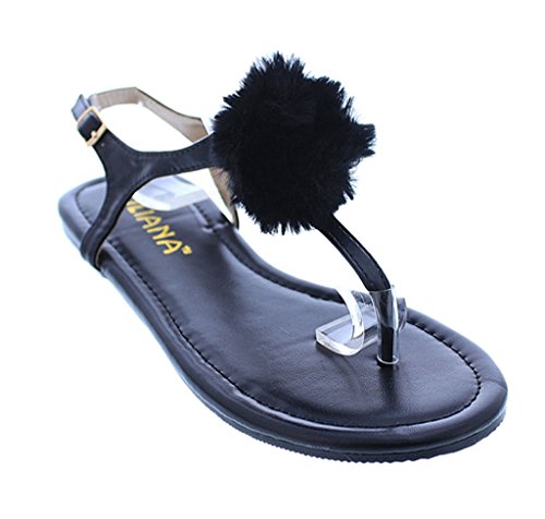 Liliana Pom Pom T-Strap Thong Flat Sandal Marlo-2