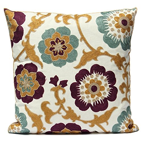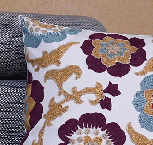 Uniifurn Purple & Teal Blue Flower Embroidered Throw Pillow Covers for Couch, Cushion Cover 17x17 Inches