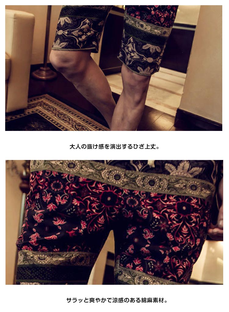 | 通気性の良い涼しげな綿麻ショートパンツ。サラっとした生地感で素肌に触れても快適な着心地。遊び心のある大人にピッタリのショートパンツに仕上がっています。 | |