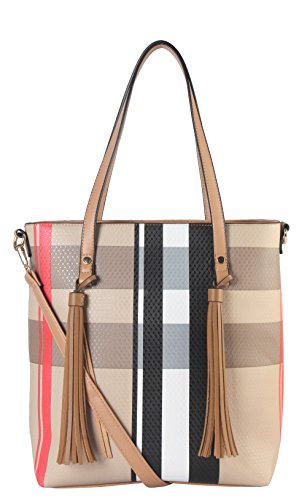 -. Brand : Diophy -. Color : Black -. Department : womens -. Feature : This handbag comes in 3 different colors: Black, Red, and Taupe. / High Quality PU Leather Large Plaid Pattern Front Double Tassels Shopping Tote Bag with removable strap. / High Quality Fabric Lined Interior with Multiple Interior Pockets. 1 Main Compartment with 1 Zippered Pocket and 2 Open Pockets Inside. 1 Zippered Pocket Outside in the Back. / Approximate Size info: Length 11.2" x Width 5" x Height 13" Material: PU Faux Leather. Top Zipper Closure. / Color showing in other color is to show the different variation angles of the handbag. The actual bag ship, will be the one your purchased. -. Model : FGZ-6275 Parent -. PackageQuantity : 1 -. ProductGroup : Shoes -. ProductTypeName : HANDBAG -. Title : Diophy PU Leather Large Plaid Pattern Front Double Tassels Shopping Tote Bag