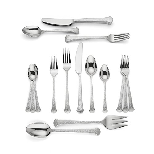- Includes four 5-piece place settings and one serving spoon and one serving fork