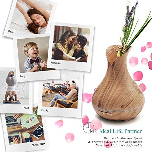 💐Best Gift for Valentine's Day💐5-IN-1 AROMATHERAPY DEVICE: This ultrasonic essential oil diffuser is an amazing multifunction aromatherapy device unlike any other you've ever used. It features a large and easy to clean 400ml water tank, 7 different LED light colors, multiple mist nebulizer modes, as well as a safety auto-switch that prevents it from overheating in case it runs out of water.