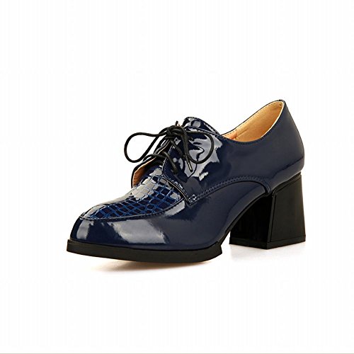 -. Title : Show Shine Women's Fashion Patent Leather Mid Chunky Heel Oxfords Shoes