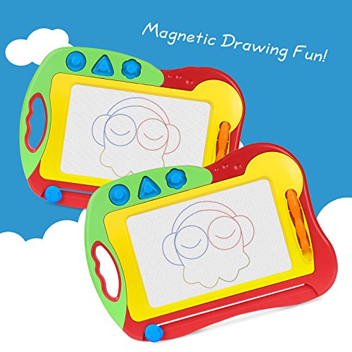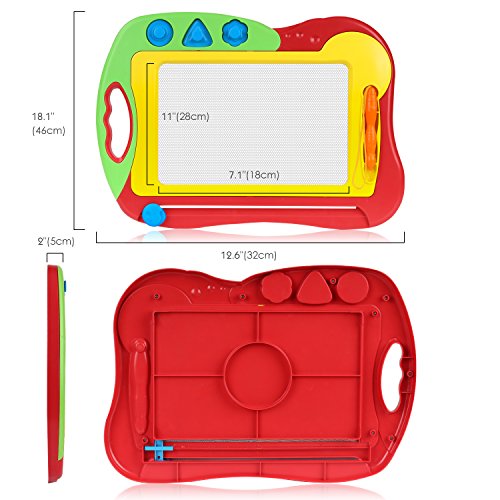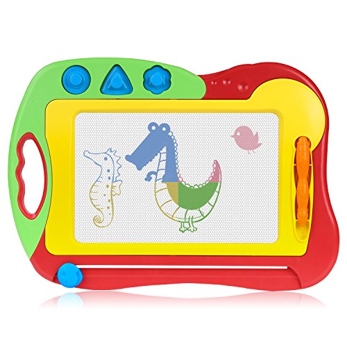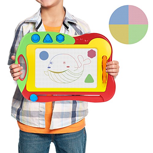 ☞MAGNETIC DRAWING BOARD - New design of drawing tablet (4 colors zone) with 3 shaped stampers (triangle, circle and flower hexagon) and magnetic pen sethered screen; a funny doodle sketch helps develop creative mind and stimulate inspiration.