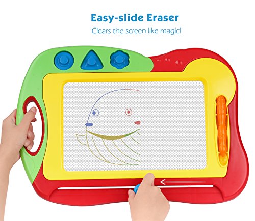 ☞ERASABLE DESIGN - A substitute for your walls for kids to draw and write! Push the lever sideways to erase the drawing on the screen. Due to strong adhesion of magnetic powder inside, please pull the slider a few more times to ensure a complete erasion.