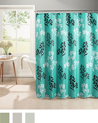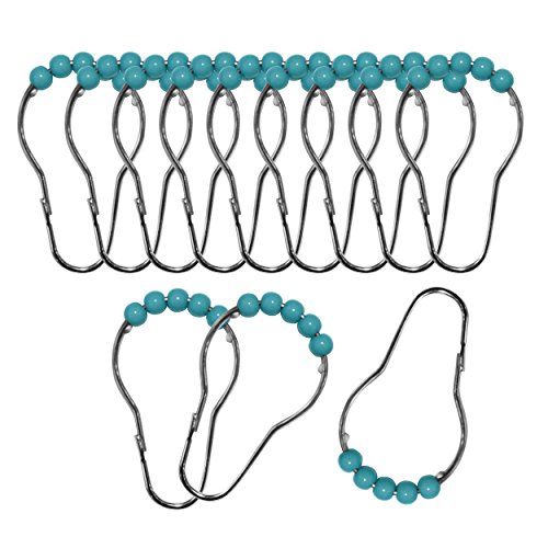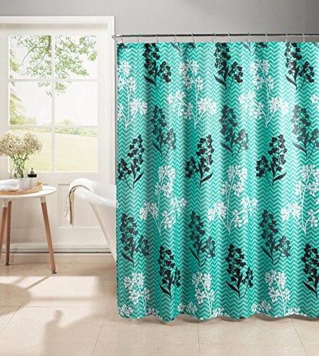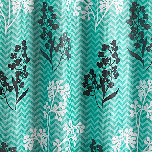 Creative Home Ideas Diamond Weave Textured 13-Piece Shower Curtain with Metal Roller Hooks, Whimsy Leaves Turquoise