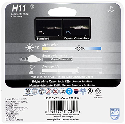 Philips H11 CrystalVision Ultra Upgrade Headlight Bulb, 2 Pack