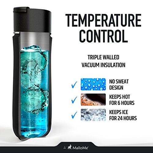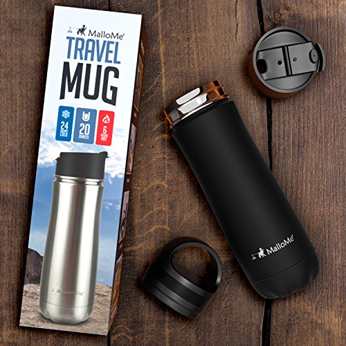 superior Vacuum Insulated Stainless Steel 20 Oz Travel Mug! Sleek looking & designed to perfection, MalloMe thermos mug will keep beverages hot (6+hrs) or cold (24+hrs), while providing 100% leak-proof insulation.