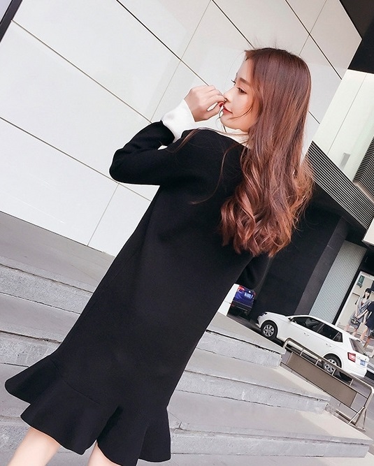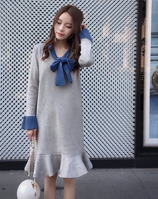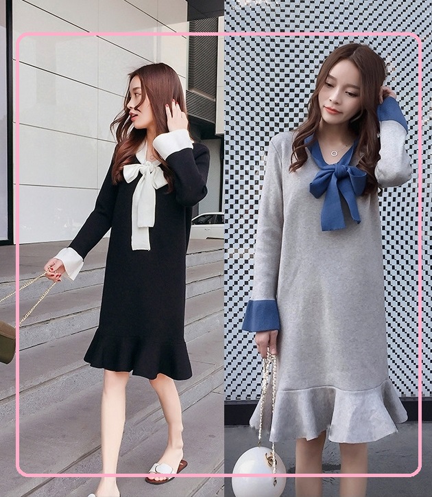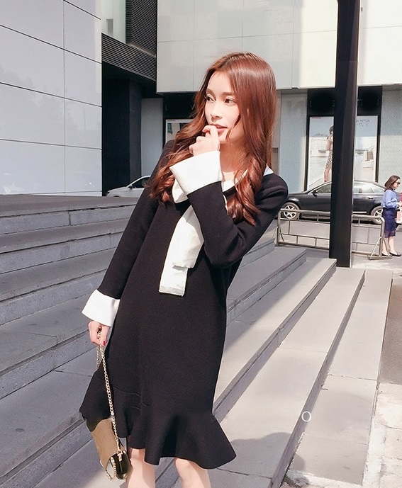 胸元をすっきりと見せてくれるバイカラーのVネックライン
