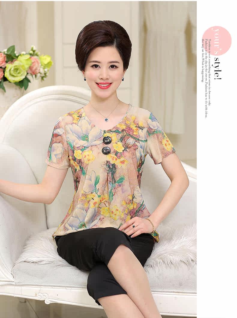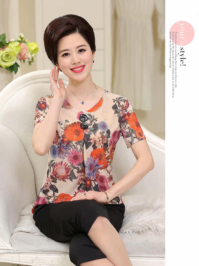 中老年女装夏装套装中年人女装短袖子40-50岁妈妈装夏季T恤裤套装
