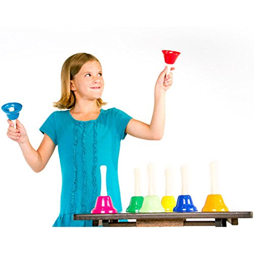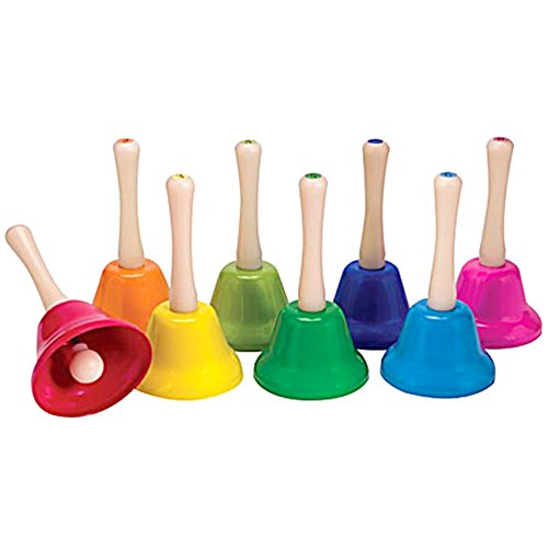 -. Feature : Color-coded, labeled sheet music for easy playing / Songs include Mary Had A Little Lamb, Old MacDonald Had A Farm, Jingle Bells, Twinkle Little Star, Row Your Boat, Joy To The World, London Bridge, Lullaby / Includes 8 hand bells and song sheet / Handles made of durable plastic / Bells each measure 5 x 3 inches