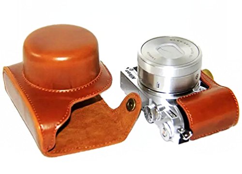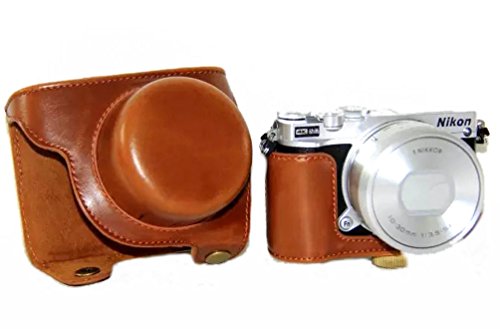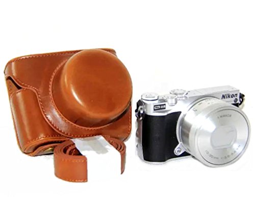 iRunzo Ever Ready PU Leather Camera Case Bag for Nikon 1 J5 Compact Camera with 10-30mm Lens (Brown)