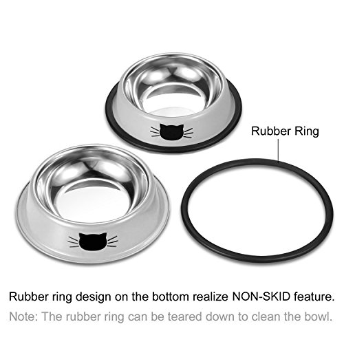 Anti-skid Rubber Base Fitted with a rubber ring on the bottom, the pet bowl can stay in place while your pets eating, no more sliding across the floor and spilling to dirt the floor; The rubber base also helps to protect the bare and hardwood floor from damage.