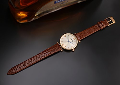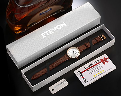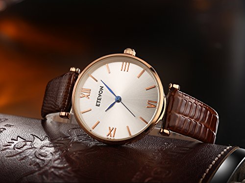 -. Title : ETEVON Women’s Quartz Retro Leather Watch Waterproof with Rose Gold Dial and Brown Strap, Fashion Luxury Casual Dress Wrist Watches for Women Ladies