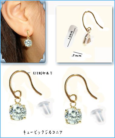 -. Title : ワンストーン 18金 ピアス レディース キュービックジルコニア K18 シンプル 揺れる きらきら キャッチ付