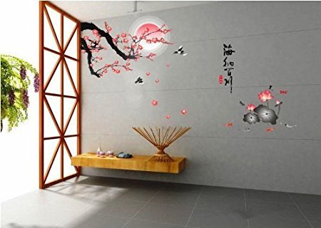 Generic GEN74444 All River Into the Sea Plum Blossom Lotus Flowers Removable Wall Sticker