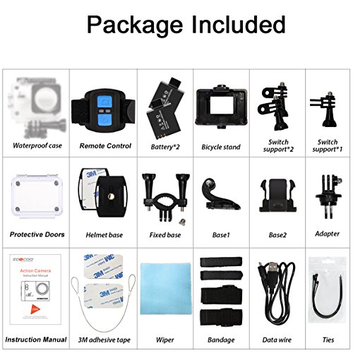BUILT- IN WIFI: Just download our App(ZSANYCAM) on your phone or tablet and connect with your C30R Sports Action Camera. Then conveniently operate or review your images or videos via your Android or iOS device! WiFi signal ranges up to 49ft/15 meters.