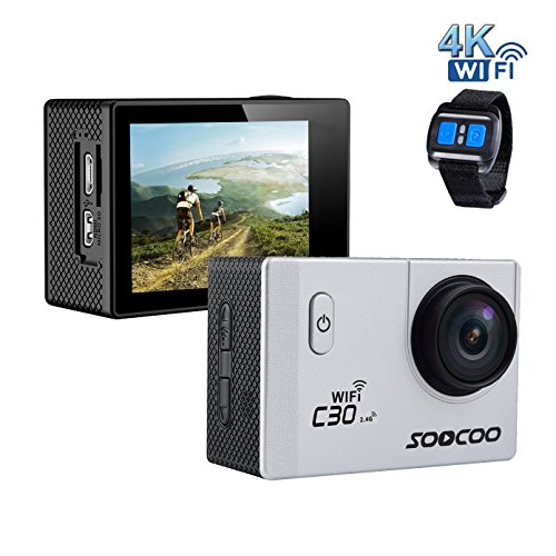 4k WIFI Sports Action Camera,SOOCOO C30R Action Camera Waterproof 20MP 170 Degree Wide Angle Sports Video Camera 2 inch LCD Screen/2.4G Remote Control/2 Batteries-Silver(Micro SD Card Not Included)