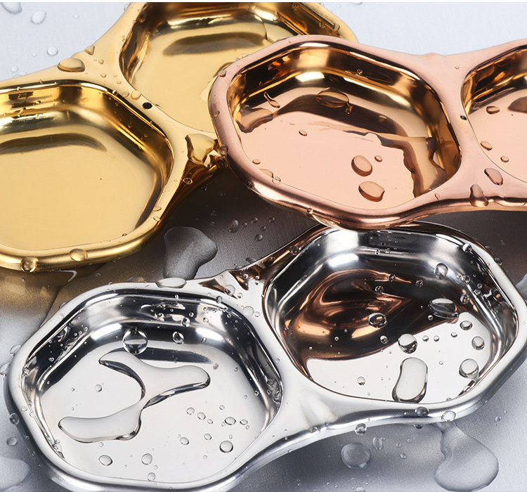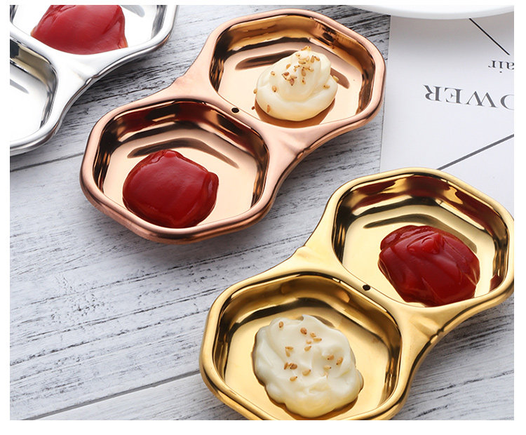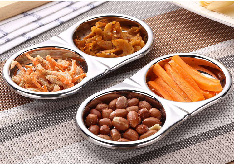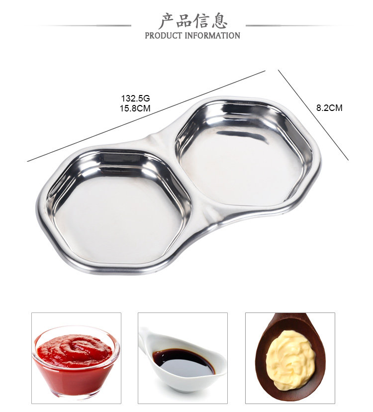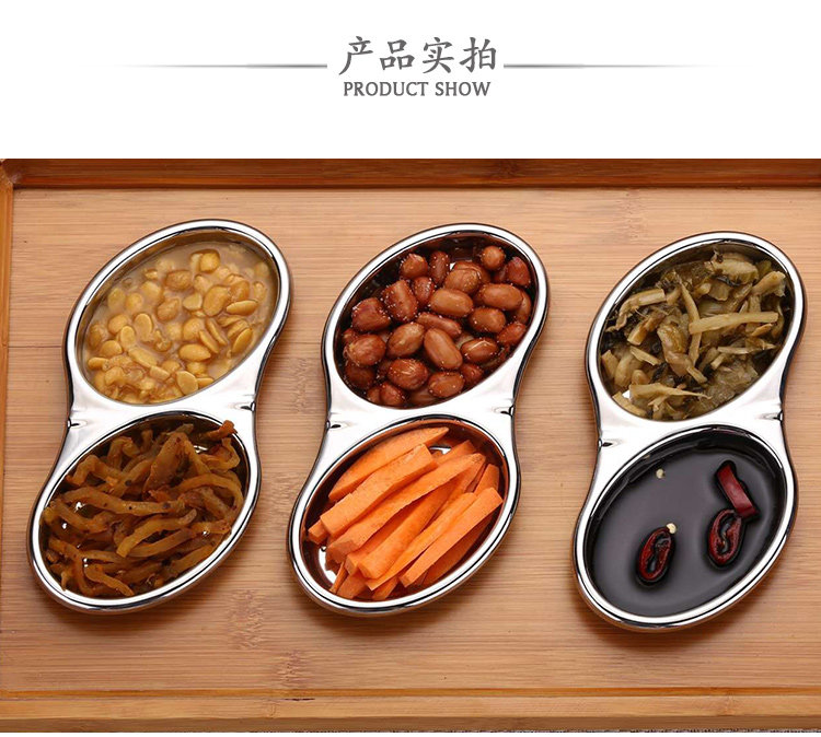 304不锈钢酱料碟调味碟韩式双格碟日韩火锅小菜碟子芥末碟花生碟