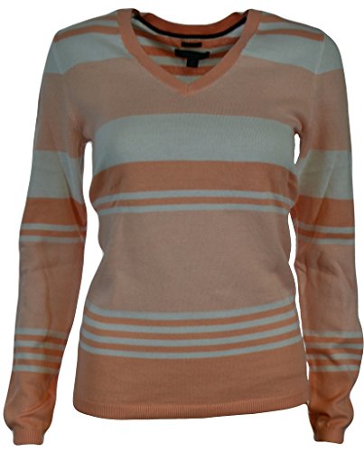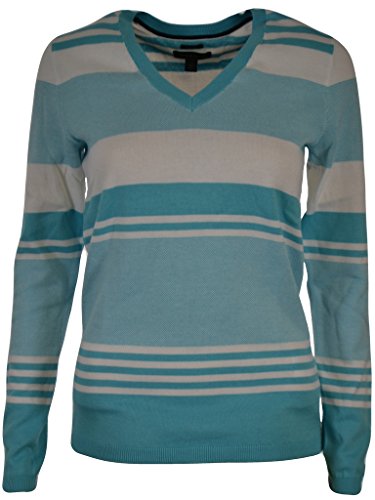Slip on this Tommy Hilfiger pullover sweater with a stylish horizontal pattern and v-neck cut, made from comfortable 100% pima cotton.