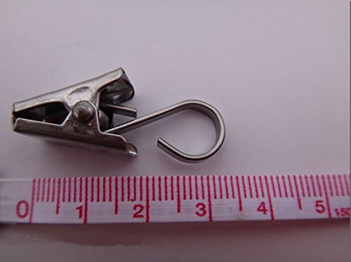- Material: Metal, Color: Satin Nickel Clip lenth: 11/16 inch Hoop opening: 1/4 inch total length (hook+clip): 1-1/8 inch Package Content : 20 x Curtain Clips