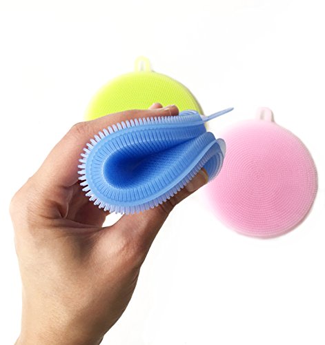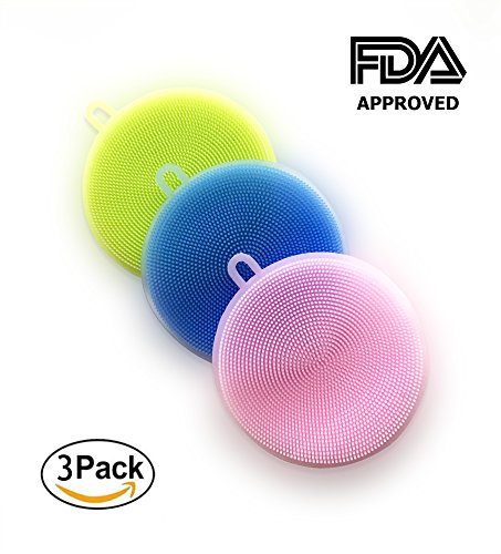 Silicone Sponge, pack of 3 Silicone Brush | Multipurpose Dish Scrubber | Kitchen Cleaning | Antibacterial Dishwashing | Food-Grade | Mildew-Free | Car Sponge | FDA Approved