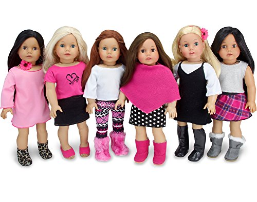 -. Feature : 18 Inch Doll Clothing and Accessories Set / 10 Piece Mix and Match Set Includes 3 SKIRTS Plus Print LEGGINGS / 3 SHIRTS, 2 DRESSES Plus PONCHO and HEADBAND / Can Create 20+ Outfits | A Complete Wardrobe / Made by Sophia's, Leading Doll Clothes Manufacturer, Not affiliated with American Girl®, Reg. Trademark of American Girl, LLC.